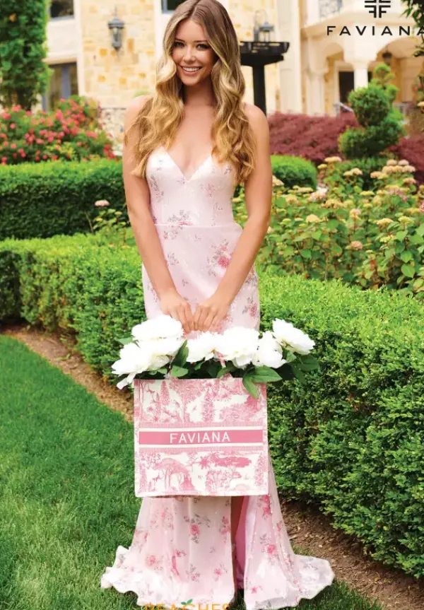 Have everyone falling in love wearing the captivating long style 11221 by Faviana. The lovely dress features a flattering v neckline and is displaying a tasteful open back enclosed with lace to instantly bring definition to the waistline. Showcasing the intricate fully sequin silhouette meticulously displaying flowers beautifully all over the entire gown.
