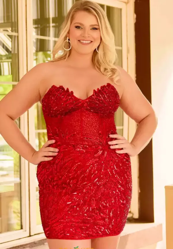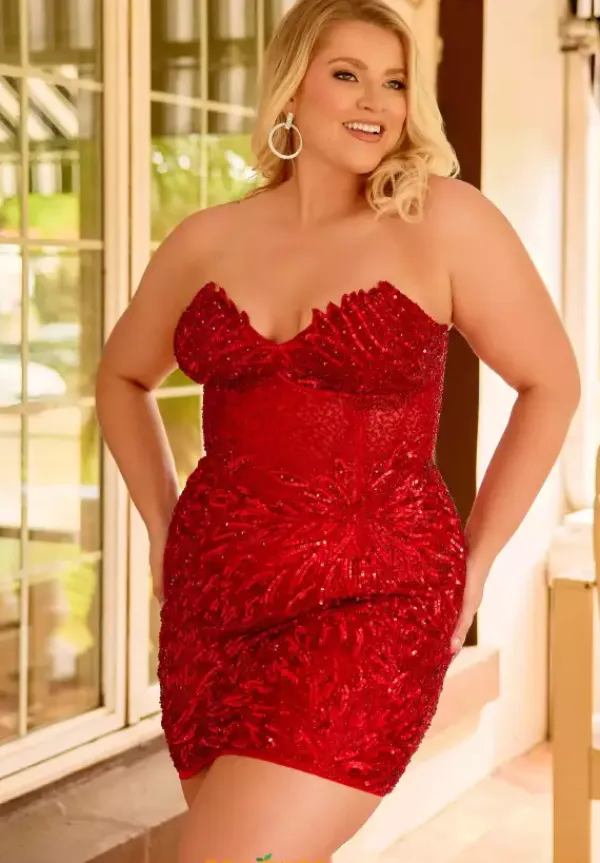 Own the room at your next special event in this short fitted dress by Primavera, style 14091. This body con silhouette features a strapless V neckline with fitted corset that hugs your waist perfectly. This dress is beautifully detailed in glistening beadwork, making you shine at every angle. Back zipper for an easy and secure fit.