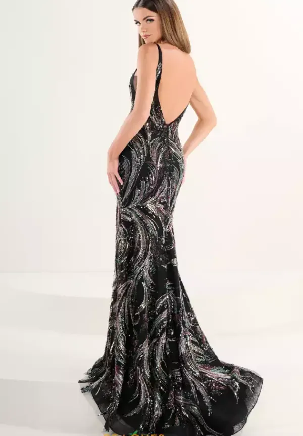 Show off your glamorous side when you wear this Tiffany long dress style 16295 to your prom. This deep v neckline dress has thick shoulder straps that lead to a low open back. Gorgeous bead work swirls in an unique pattern with the right amount of sparkle and shimmer. A long train trails right behind you.