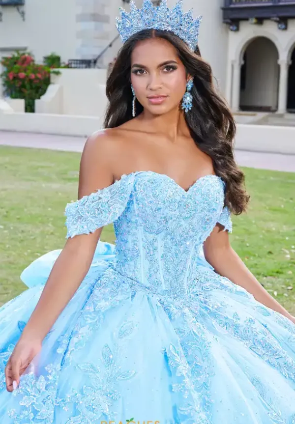 Shine bright on your big day in this ultra glistening Tiffany Quinceanera ball gown dress 26072. This Traditional style features the classic adjustable corset bodice along with the voluminous tulle skirt that is completed with the timeless sweep train. Shimmering appliques and ornate beadwork adorn the corset bodice and make a stunning transition onto the skirt giving you impeccable shine and detail. This Tiffany ball gown features a detachable bow and cap sleeves.