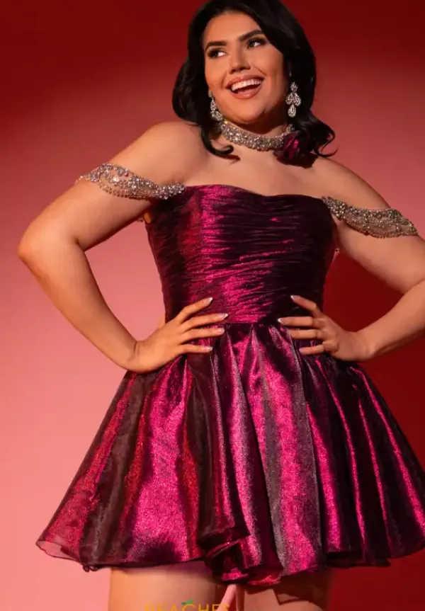 Show stopping style 40636 by Rachel Allan is the perfect choice for your upcoming event. The a line dress features a straight across neckline paired with off the shoulder cap sleeves adorned with glistening beadwork and a matching chocker with a floral detail. Made from an organza material to have you naturally shimmering like a trophy for all your photo.