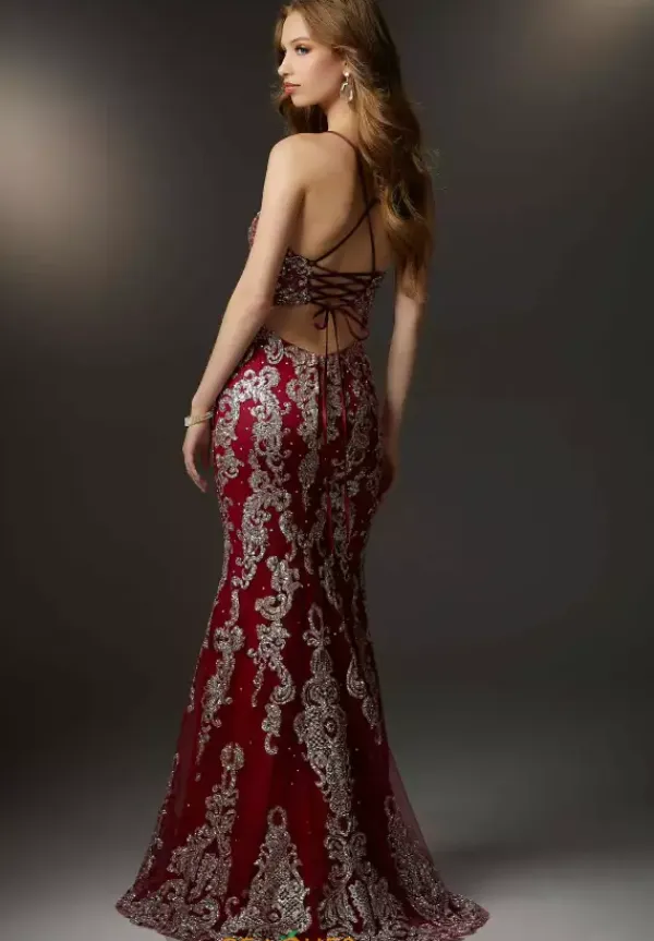 The perfect mix of romance and glam are showcased in this stunning Morilee gown 48018. This ensemble features a lovely scoop neckline with a sheer corset detail encrusted with lace and beads. A form fitting skirt outlines your curves and exposes the lower back as the finishing touch to an unforgettable piece.