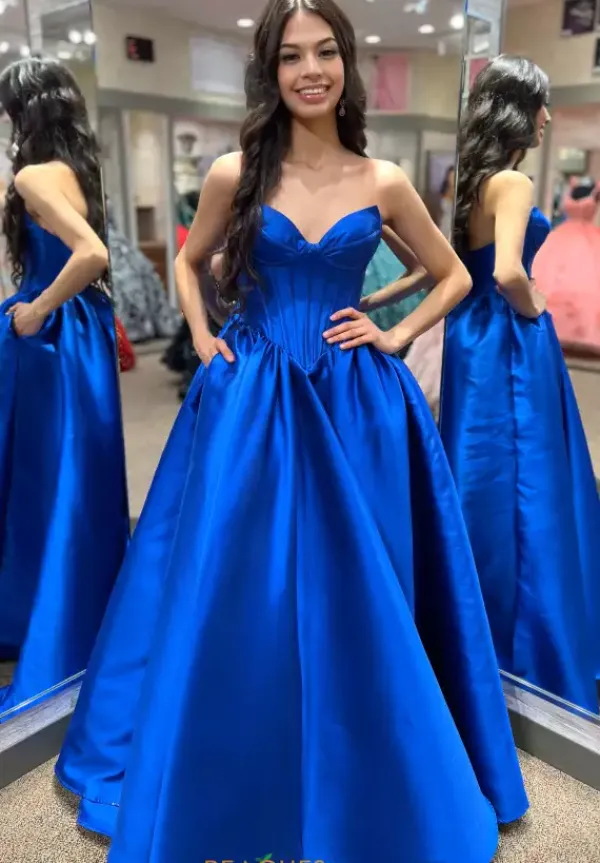 Feel like a modern day princess in this enchanting Morilee dress 49033. Sleek and sophisticated, the flattering a line silhouette features a strapless sweetheart neckline. The structured corset bodice defines your figure beautifully, making this dashing dress a perfect choice for all silhouettes. Made in an elegant satin fabric, the flattering a line skirt flows gracefully with every step you take.