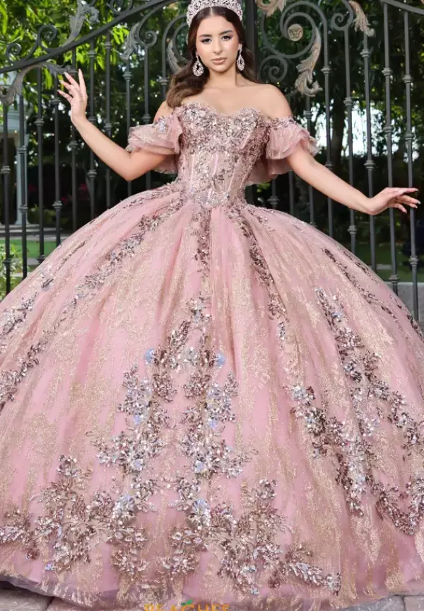 Have everyone wonder where you got your dress on your special day when you walk in wearing LizLuo Quinceanera dress 56534. This show stopping ball gown reveals a lovely sweetheart neckline with off the shoulder detachable cap sleeves. The built in corset bodice and voluminous skirt is decorated from top to bottom with unique lace applique and soft glitter tulle.