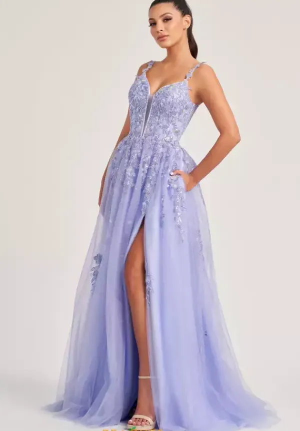 Be the envy of the night in this spectacular A line dress by Colette. style CL8060. Featuring a V neckline with adorned straps, and a corset bodice with a lace up back that will enhance your figure to perfection. The bodice is adorned with glistening sequins, beadwork, and applique detailing that cascade down the chic A line glitter tulle skirt. To bring the look together, this ensemble has a thigh high slit and a train that gives a weightless feel to the dress. This piece also has a removable front bodice lining Included.