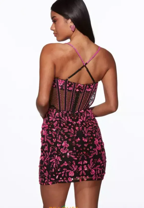 Walk into your next event ready to strike a pose when you wear this marvelous dress designed by Alyce Paris, style 40093. This short fitted dress has a combination of beautiful applique and beadwork, followed by a lovely scoop neckline and a secure corset that will leave you feeling picture perfect ready.