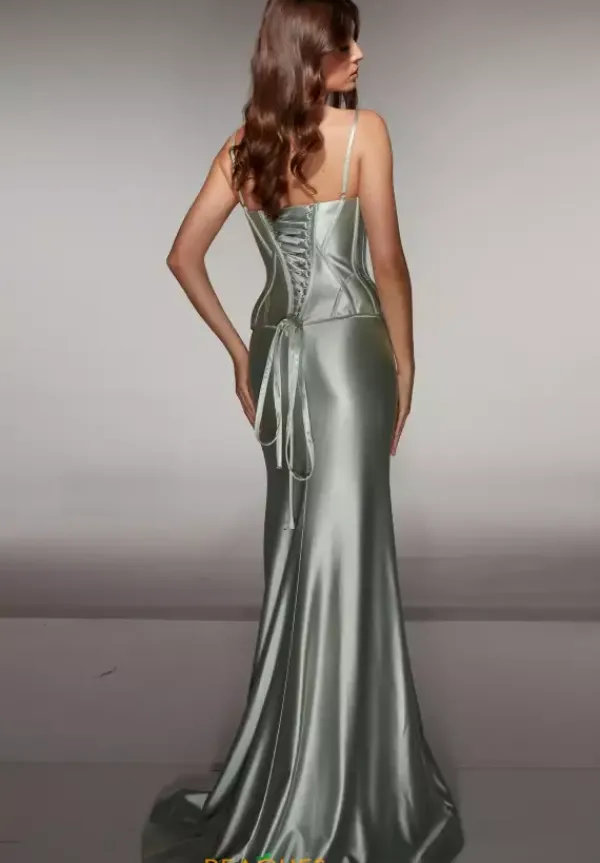 Look sleek and sexy in this elegant long fitted gown by Alyce Paris style number 61991. This gorgeous dress features a classic deep yet modest V neckline with thin straps for extra support. The bodice is a full corset with exposed boning and embellished with beautiful applique and beaded detailing. The thigh high slit adds the perfect final touch.