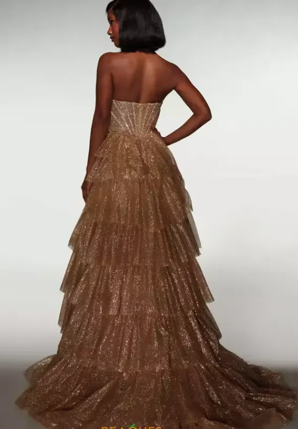 Have no competition when you brighten up the room in this exquisite full shimmering Alyce Paris prom dress style 62144. The vibrant sequin encrusted corset bodice boasts glimmering beaded boning along with an enticing plunge down the center. The radiant glimmering tulle skirt does not miss a sparkle while cascading into a fabulous ultra long sweep train and thigh high slit.