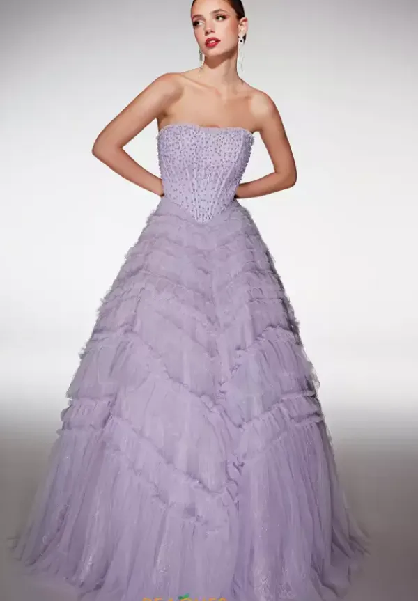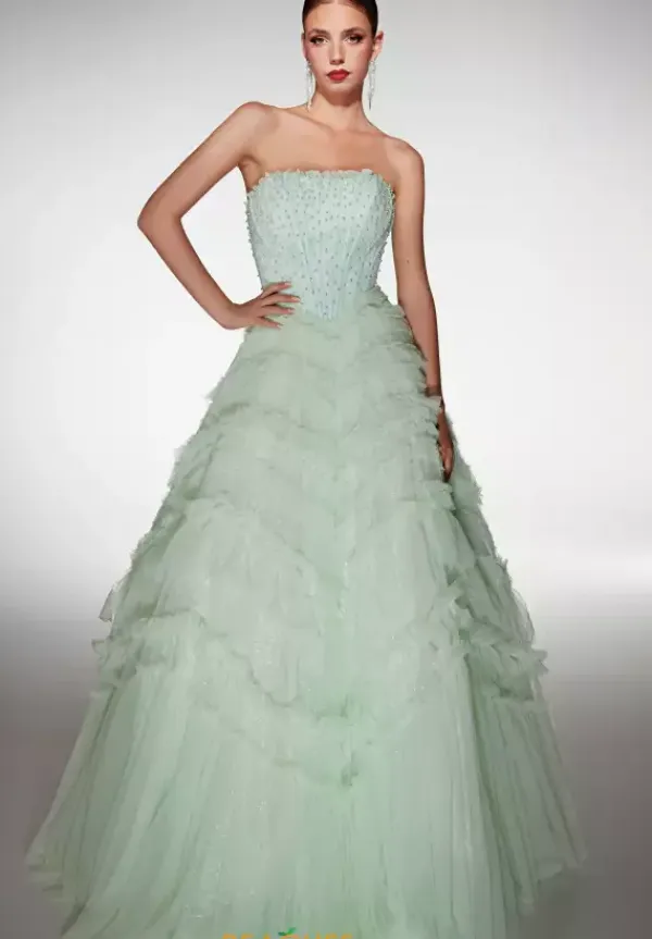 Feel regal and glamorous in this Alyce Paris ball gown style 62208. This all over tulle dress features a beaded bodice with a scoop neckline. The bodice is embellished with hints of sparkling sequins and beads. The full tulle ball gown skirt has tiers of ruffled tulle to add dimension to the skirt.