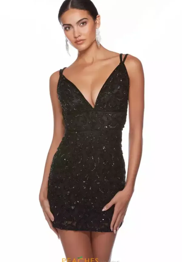 Have fun at your homecoming dance wearing this absolutely gorgeous Alyce Paris short dress 84013. This body con silhouette showcases a flattering v neckline with beaded straps revealing an eye catching open back. The all over lavish beadwork will have all eyes on you as you arrive looking picture perfect.
