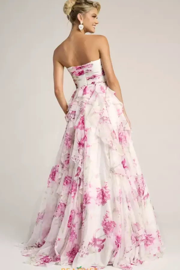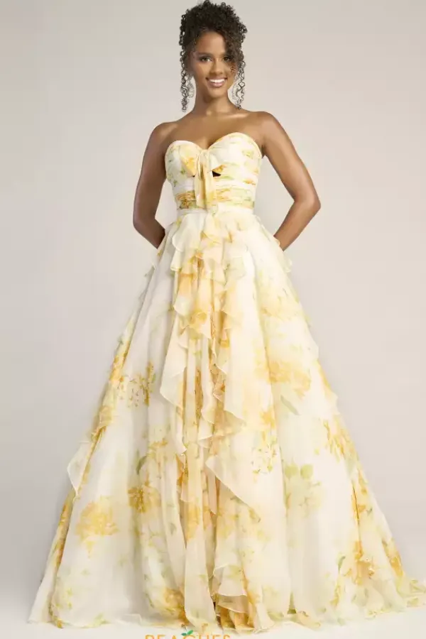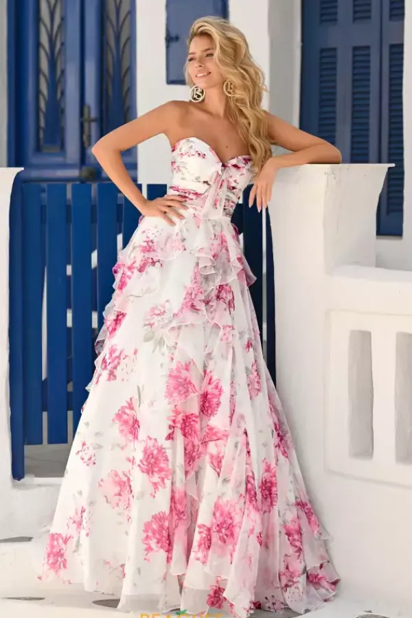Make unforgettable memories in this stunning Portia and Scarlett A line gown, style PS26254. This dress features a strapless sweetheart neckline that pairs beautifully with a chiffon bodice, perfectly accentuating your silhouette. The skirt flows out gracefully, adorned with unique cascading ruffles for an elegant and romantic finish.