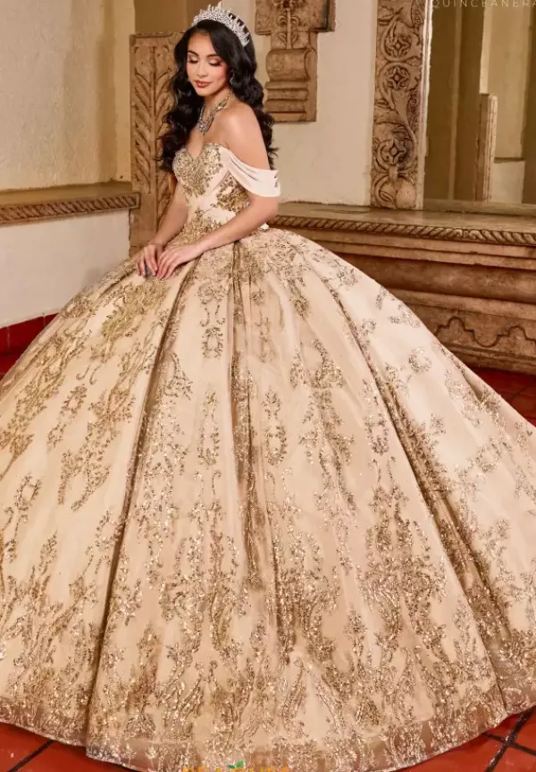 Be the show stopper as you make your grande entrance in the ravishing Quinceanera ball gown style RQ2194 by Rachel Allan Quince. The sweetheart neckline is paired wit lovely satin cap sleeves and illusion sleeves that are gorgeously adorned with lace. The bodice is intricately embellished with a combination of applique and meticulous beadwork that trails down the entire full skirt and makes its way down the fly away train.
