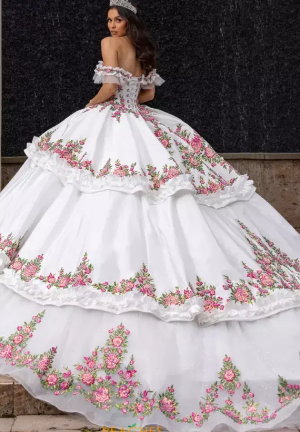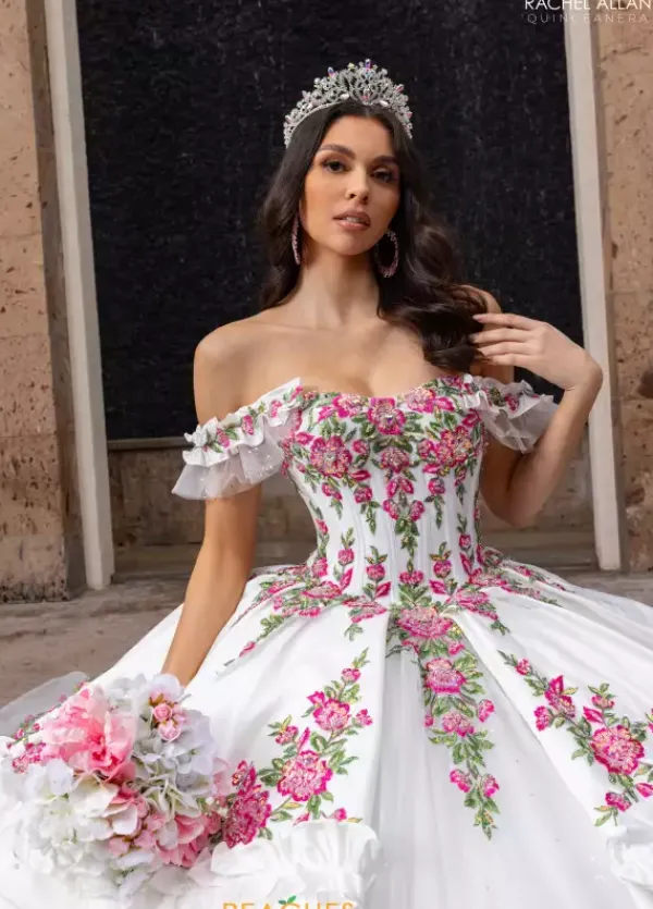 This Rachel Allan Quince dress is something you won’t forget and you will make memories that last a lifetime, Featuring a fashionable off the shoulder scoop neckline, Style RQ5015 comes with a detachable jacket that let’s you change your look for photos. With its beautiful floral applique and eye catching layers, this dress is truly stunning and unforgettable.