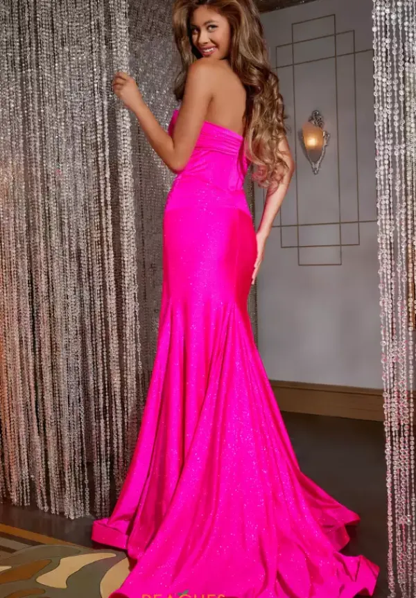 Feel sleek and glamorous in this fitted long Jovani dress style 43419 for your next special event. The strapless sweetheart neckline dress has a structured bodice. A key hole opening in the center has nude illusion mesh. The jersey material hugs to your figure showing off your shape. Completed with a high front side slit and gorgeous train.