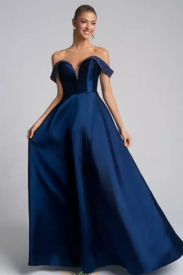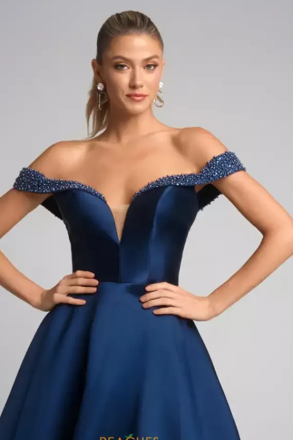 Feel picture perfect like a princess when wearing this A line dress style XO117 by Portia and Scarlett. The sweetheart off the shoulder neckline is beautifully detailed with pearl beading to bring a subtle classiness to the overall look. Along the small of the waist starts the flare of the full mikado skirt to flow effortlessly as you walk.