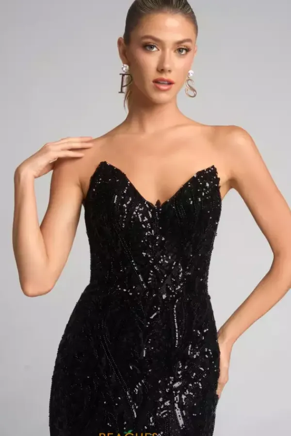 Gleam as the spotlight hits you upon your entrance in glistening long style XO134 by Portia and Scarlett. Feating the fitted bodice paired with a flattering strapless v neckline. Delicate beadwork decorated the entire fitted bodice and extends beautifully down the fit and flare silhouette to have you illuminating perfectly all night long.