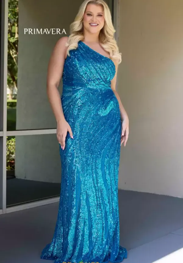 Glisten as you step foot into prom wearing remarkable long style 14075 by Primavera. Featuring the lovely asymmetrical neckline paired with a figure flattering fit and flare silhouette. Waterfall sequin placement meticulously to instantly shape and flatter the entire body effortlessly all night long.