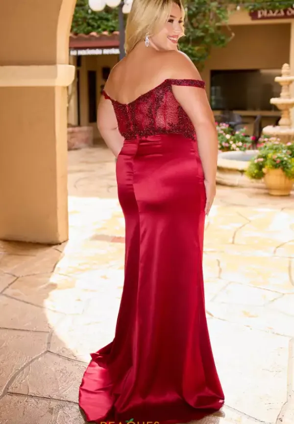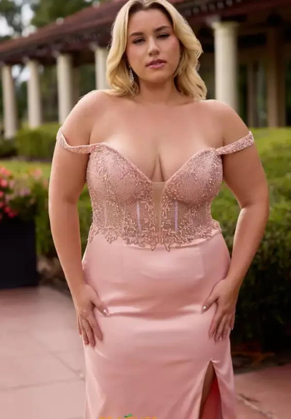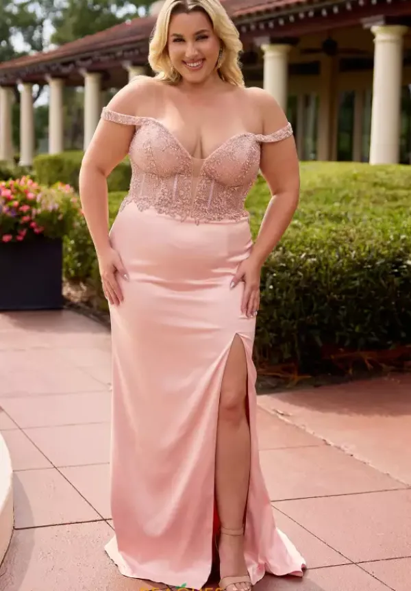Look like pure elegance in this shimmering Primavera Fitted prom dress style 14107. Glittering lace adorns the sheer illusion paneling of the beaded corset bodice and glimmers perfectly against the top of the straight satin skirt. The silky long sweep length skirt features a classic thigh high slit.