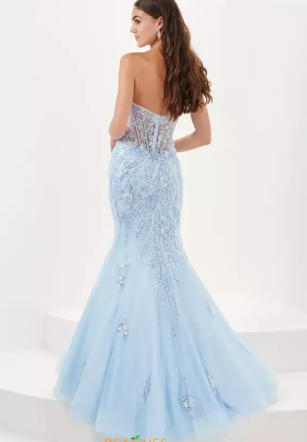 Bring out your inner fashionista when you wear this show stopping Tiffany dress 16074. Showcasing a strapless sweetheart neckline, this lavish mermaid dress is accompanied by a see through corset bodice. Garnished with shimmering beadwork and sparkly tulle material, this gorgeous dress will ensure you to be seen from miles away.