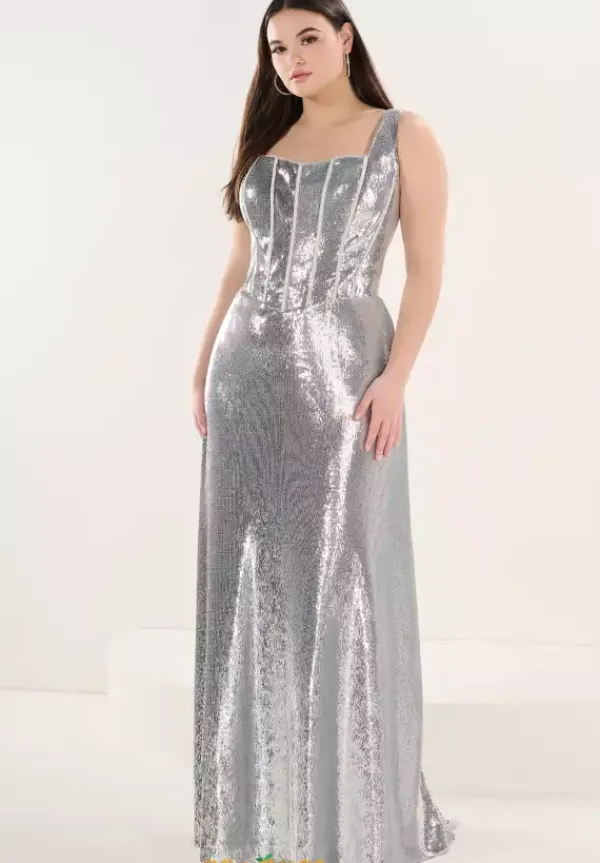 Tiffany style 16313 is the perfect choice for your special occasion. The fitted silhouette reveals a modest scoop neckline and thick shoulder straps to support. The fitted bodice features exposed boning showing off your figure. Completed embellished with shiny and trendy sequins ensure you will standout from every angle.