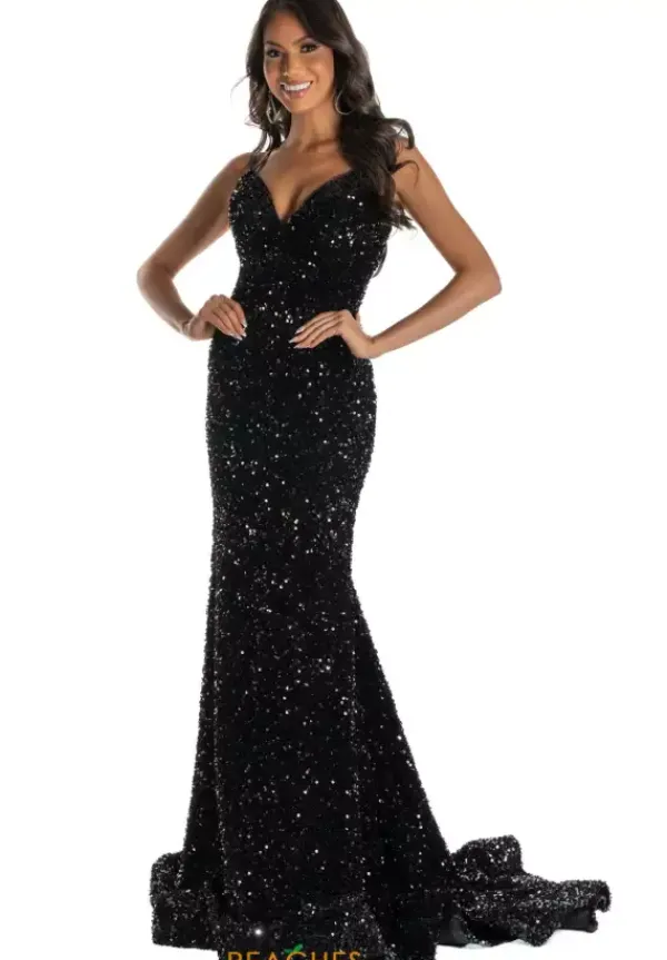 Glamorize your entire night while wearing this long Sherri Hill style 55153. Featuring a double spaghetti strap where one strap does fall along the back in a crisscross manner and clasps at the center. Made in a one of a kind velvet sequined fabric that shines so perfectly you’ll be seen from blocks away and you will always feel picture ready.