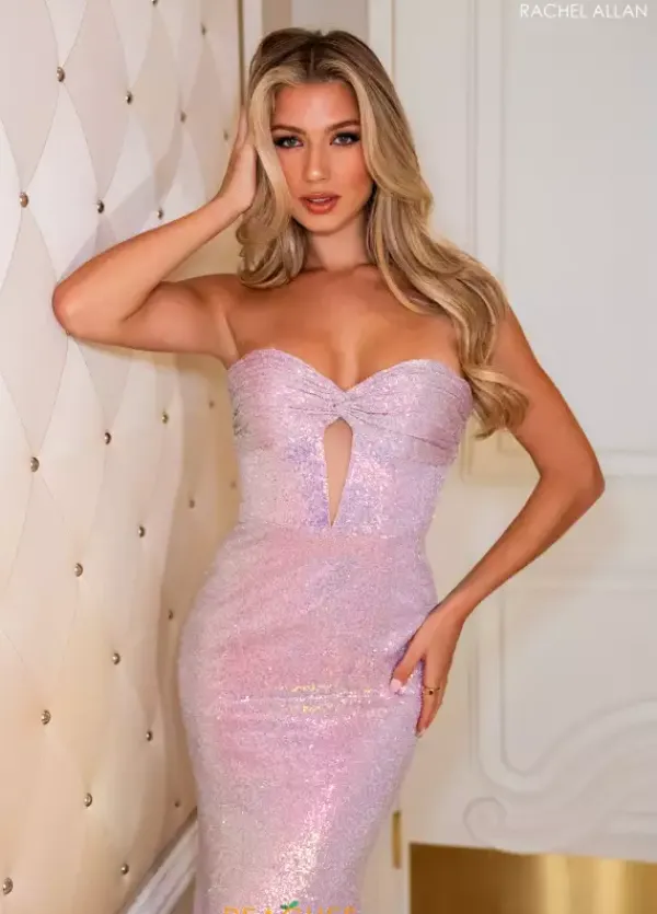Show up and show off in this Rachel Allan long dress for your special event. Fitted silhouette 40547 showcases a stunning strapless sweetheart neckline paired with a key hole cut out. All over sequins are adorned on this number adding an everlasting sparkle to ensure you stay picture ready all night long.