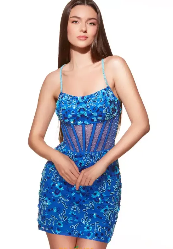Walk into your next event ready to strike a pose when you wear this marvelous dress designed by Alyce Paris, style 40093. This short fitted dress has a combination of beautiful applique and beadwork, followed by a lovely scoop neckline and a secure corset that will leave you feeling picture perfect ready.