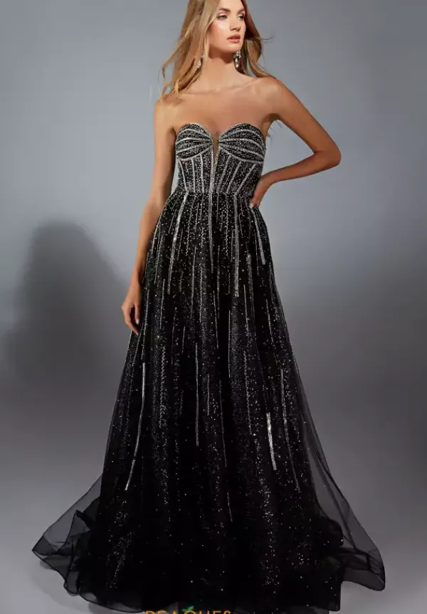 Wow the crowd wearing this striking Alyce Paris long dress 61770 for your special event. This gorgeous A line silhouette showcases a lovely sweetheart strapless neckline paired with a built in corset bodice. The soft glitter tulle skirt is adorn with radiant patterns of beadwork that will have you picture ready from every angle.