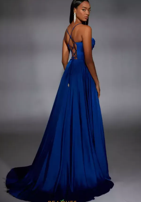Look and feel beautiful wearing this stunning Alyce Paris long dress 61883. Perfect for any special occasion, this a line silhouette showcases a modest sweetheart neckline with simple straps leading into a lace up open back. The simple satin material features a fitted bodice and flowing skirt showing off a thigh high slit.