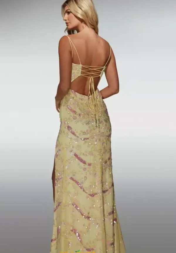 Show off your whimsical side in this gorgeous long fitted dress by Alyce Paris 62016. This stunning gown features a classic V neckline with thin straps for extra support. The dress has a corset lace up and a sexy open back. The entire dress is fully embellished in delicate beadwork and sparkling sequins that will have you sparkle and shine.