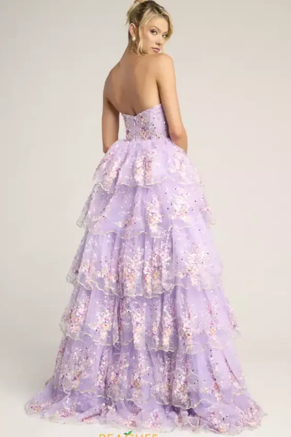 Hear the crowd gasp as you walk past in this long A line gown designed by Portia and Scarlett style, PS26051. Featuring a scoop strapless neckline with an appealing fitted corset, fully embellished in eye catching embroidery and stunning applique from top to bottom. Feel picture perfect ready with the sensational thigh high slit.