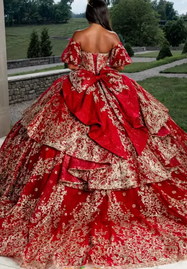 Have everyone taking a second glance as you wear the impressionable ball gown style Q1031 by Amabella. Featuring the fitted bodice embellished entirely of applique and paired with lovely detachable cap sleeve and bow laying along the lower back. Headlining the full tulle skirt matched with applique and ruffled layers.