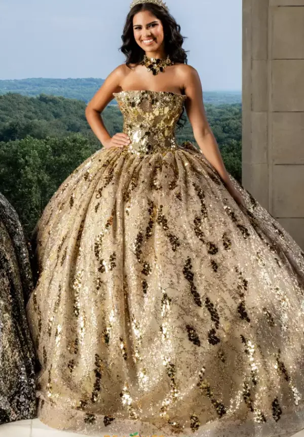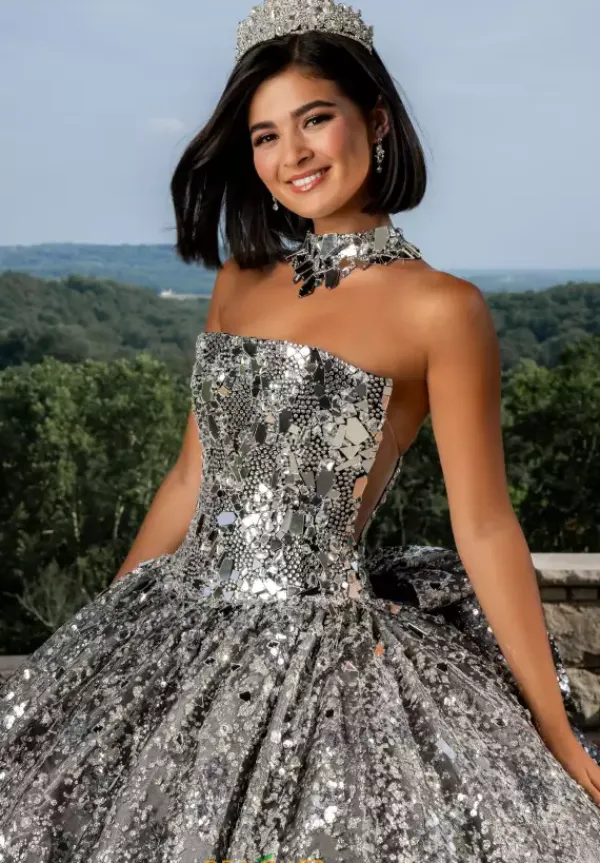 Stun everyone with your beauty when you decide to wear this gorgeous dress by Amabella style Q1032. This Quinceanera dress features a strapless straight across neckline paired with a corset lace up that goes seamlessly with the large stunning bow. The glitter tulle and the train adds to the glory of this dress. The cut class and beading from the top to bottom is sure to have you stand out amongst everyone in sight.