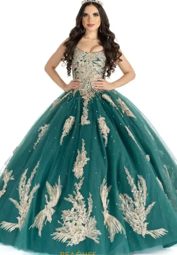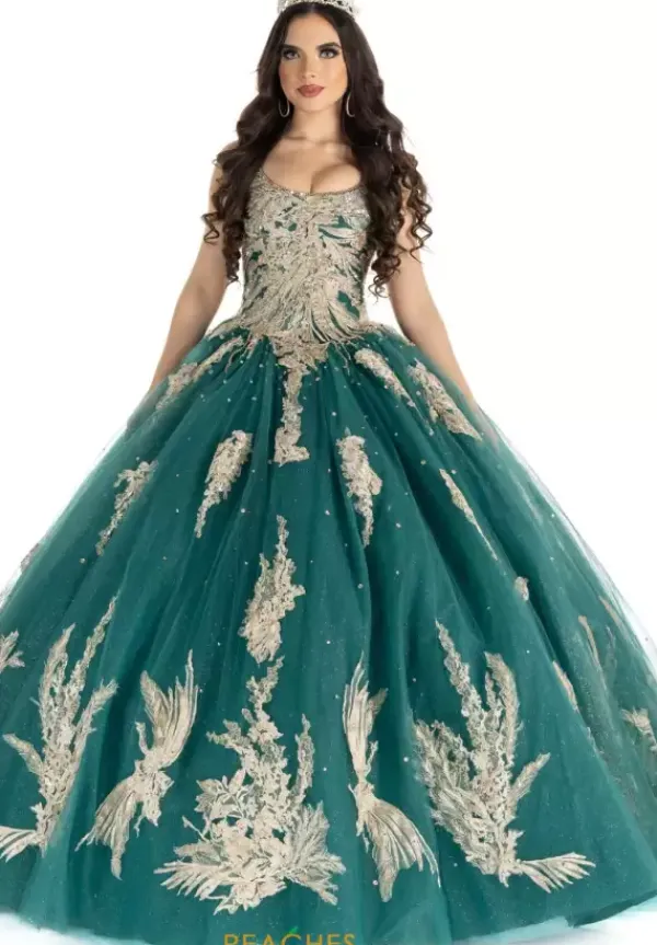 Lovely Vizcaya ball gown dress 89311 is sweet and elegant. The scoop neckline on this dress has straps that wrap over the shoulder into a low scoop back. The back encloses with a lace up and a detachable bow finished off the end. Tulle material make up the ball gown skirt with embroidered lace appliques. Matching bolero jacket included.