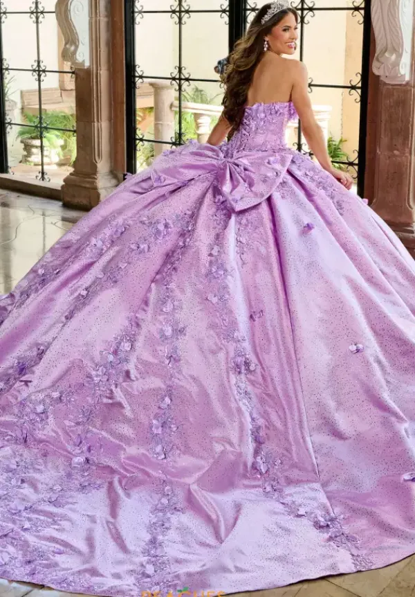 Jaws will drop when you walk in wearing this Rachel Allan Quince ball gown style RQ1157. This dress just has it all. The strapless sweetheart neckline is adorn with three dimensional flowers over beautiful beadwork. The sleeves are detachable as well as the back bow. The ball gown satin skirt is sparkling with hot stone rhinestones and brings those matching flowers from the bodice to the skirt.
